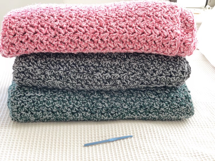 Years ago I received a crocheted blanket from my cousin, who thoughtfully told me that she considered I may need a blanket to keep me warm when I was moving away for the first time after college. That blanket was thick and long, and uneven along the edges in a sense that it was uniquely handmade. The color of it was bright pink with mixing strands of darker pink and paler pink throughout it. Just learning how to crochet myself at the time, I looked at the wide stitches and tried to figure out which stitch she used to make this blanket for me. Still to this day, I cannot figure out which stitch she may have used. Crab stitch maybe? Alternating shells?